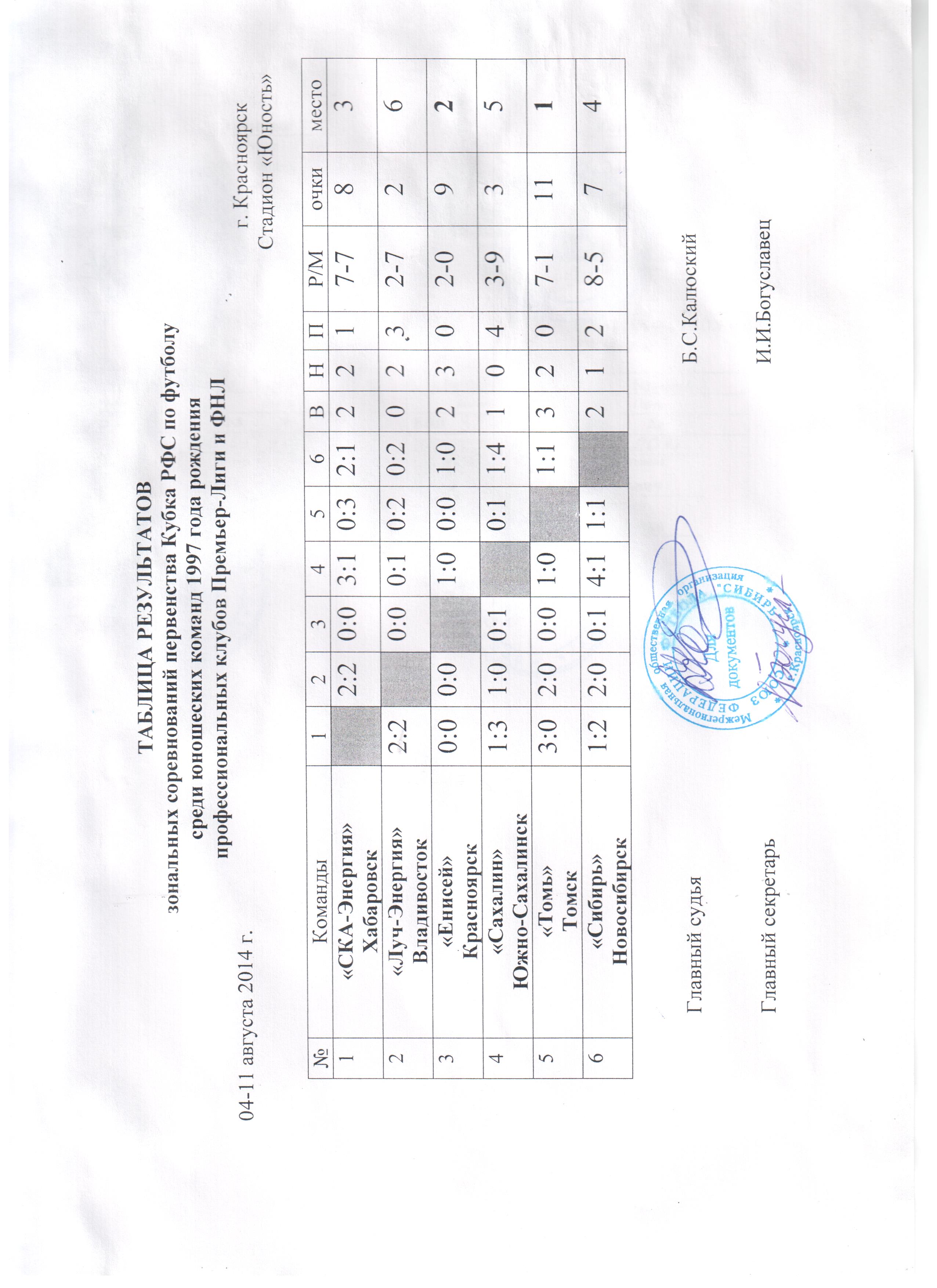 11 августа 2014 года завершились зональные соревнования Кубка РФС по футболу среди юношеских команд 1997 года рождения профессиональных клубов Премьер-лиги и ФНЛ. Победитель турнира определился в матче лидеров "Томь" (Томск) - "СКА-Энергия" (Хабаровск), который завершился убедительной победой томичей со счётом 3:0. Вторую путёвку в финал Кубка РФС завоевала команда "Енисей" (Красноярск), победившая новосибирскую "Сибирь" со счётом 1:0.